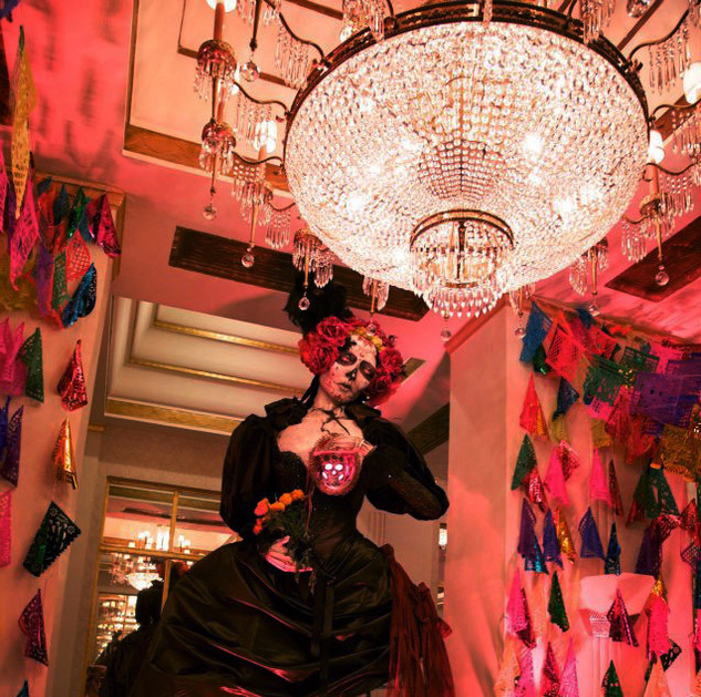 The Waldorf Hotel, completely transformed as a Day of the Dead festival by Douglas Little.
